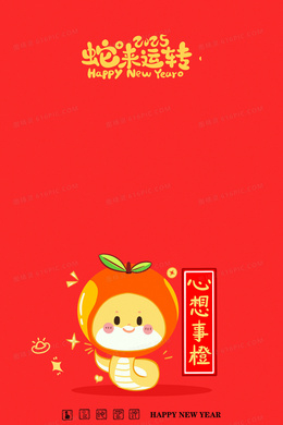 红色卡通新年蛇年合成背景