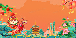 彩色国潮春节蛇年合成背景