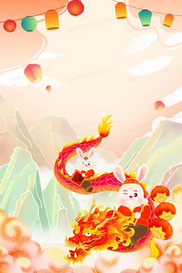 2023兔年插画风卡通灯笼喜庆祝福背景