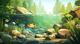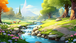 春季山林草地小溪流插画