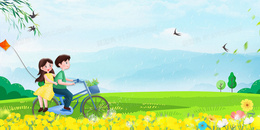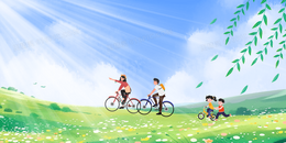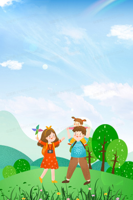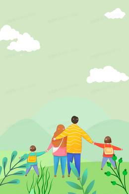 全家一起春游合成背景
