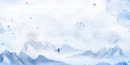 青花瓷钢笔淡彩水墨山水背景