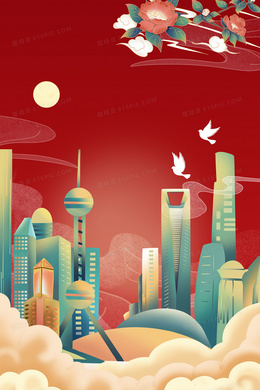 中国风红色高端武汉加油城市建筑抗击肺炎商务背景