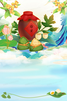 国潮系列端午节艾叶雄黄酒创意合成背景