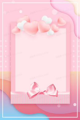 七夕情人节浪漫剪纸风爱心蝴蝶结背景
