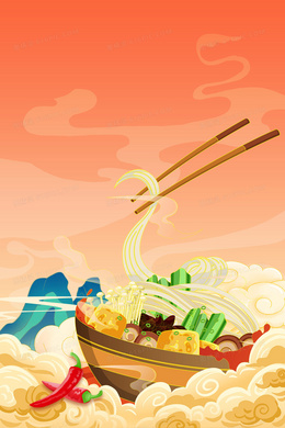 > 国潮风螺蛳粉美食背景