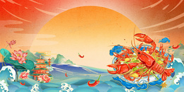 国潮风山水夜市美食小龙虾背景