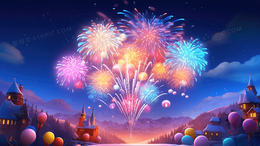 夜空中绽放的绚烂烟花唯美风景插画