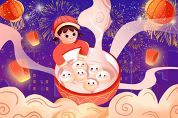 躺在云朵上抱着兔子睡觉的小女孩插画