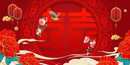 传统中式婚礼红色喜庆双喜纹理中国风背景