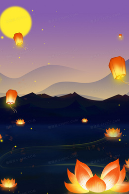 创意手绘鬼节河灯祈福背景