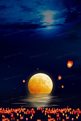 中秋节满月河灯摄影图合成背景