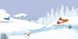 冬天小清新雪人雪屋寒冷冬季手绘插画背景