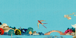 蓝色创意新中式中国风别墅房地产开卖宣传背景