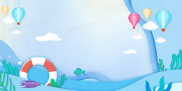 蓝色卡通插画剪纸风海洋背景