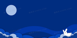 蓝色大气中秋节玉兔宣传背景