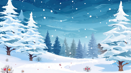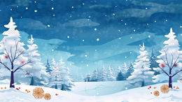 冬季积雪山林唯美夜景插画