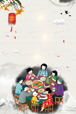 > 除夕团圆饭背景素材