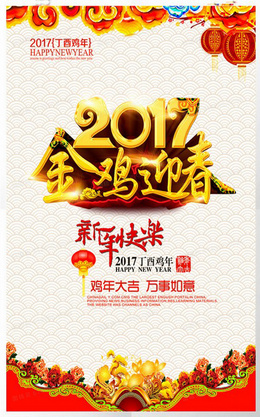 中式除夕新年2017剪纸鸡年喜庆海报背景