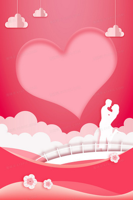 红色剪纸风情侣浪漫情人节背景