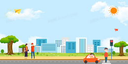 卡通手绘全国交通安全反思日礼让行人海报背景