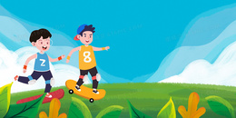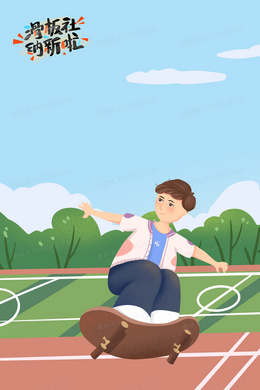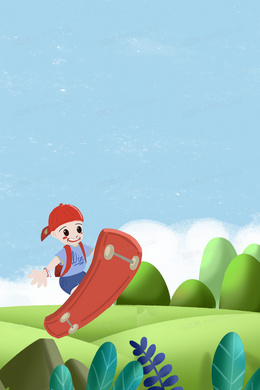 手绘卡通插画滑板背景