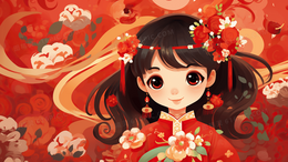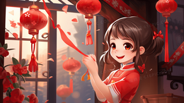 > 2024新年龙年喜庆女孩过新年卡通人物插画