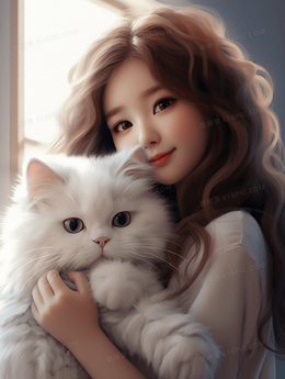 可爱女孩抱着猫咪插画