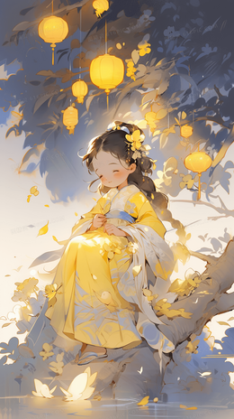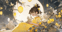 古风少女中秋节月下女孩创意插画