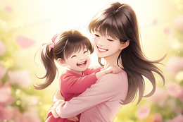 唯美花卉母亲抱着可爱的孩子创意插画