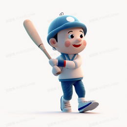 戴着蓝色帽子玩曲棍球的可爱男孩3D模型