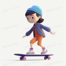> 戴着蓝色帽子玩滑板的可爱男孩3D模型