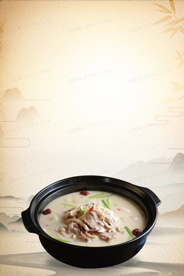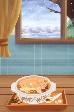 手绘插画秋冬膳食养生鸡汤蘑菇背景