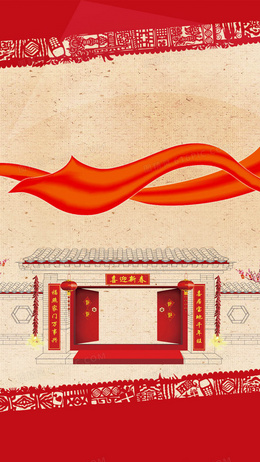 红色鸡年新春psd分层H5背景