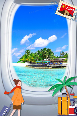 飞机窗外海边旅行清新背景