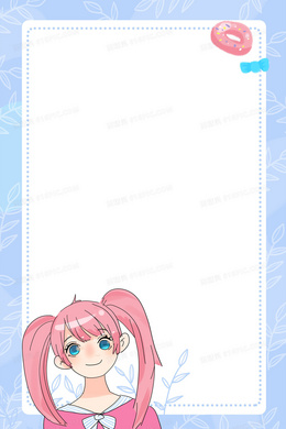 可爱的卡通动漫女生甜甜圈糖果手绘边框背景