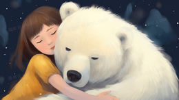 躺在云朵上抱着兔子睡觉的小女孩插画
