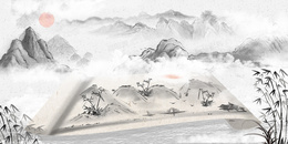 新中式经典湖蓝简约中国风剪纸祥云背景