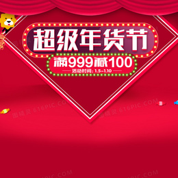 超级年货节红色主图背景素材