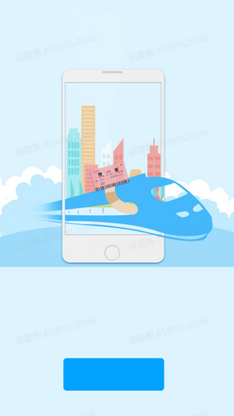 扁平化蓝色手机火箭速度云朵手机引导页背景