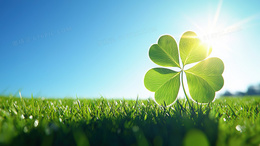 蓝色绿色手绘卡通四叶草女孩合成背景
