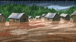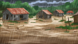 卡通洪水中被淹没的房屋