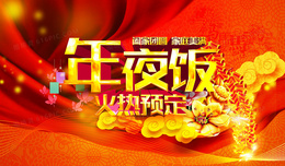 红色喜庆除夕夜年夜饭预定海报背景素材