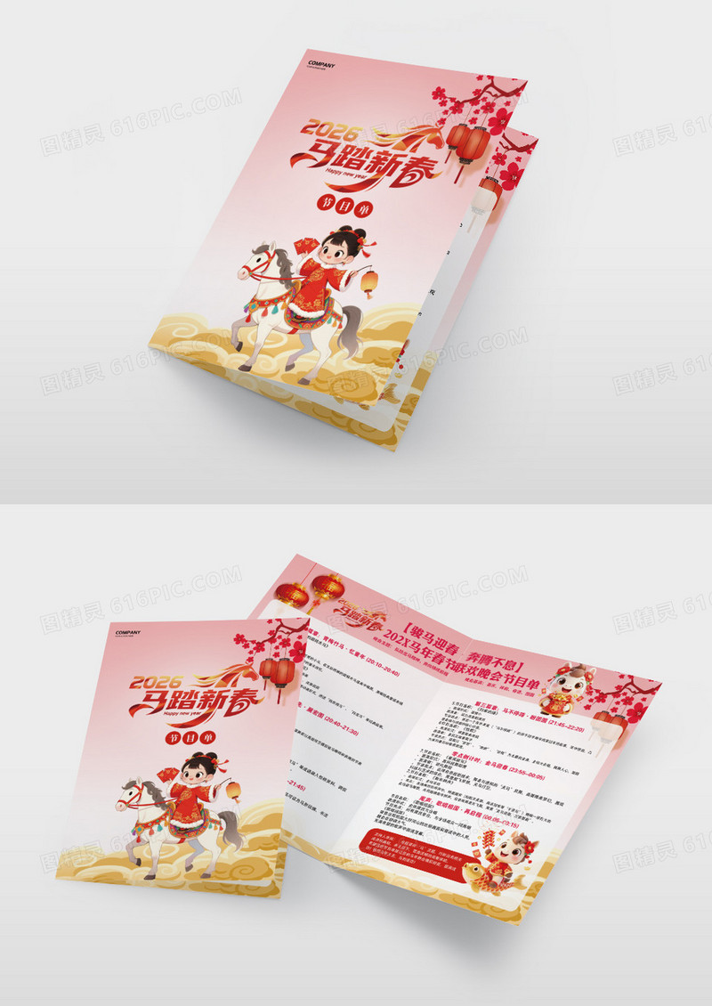 当前位置: 图精灵 > 设计模板 > > 粉底中国风2026新春大吉马年晚会活动节目单