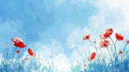 卡通风蓝天下的花朵背景