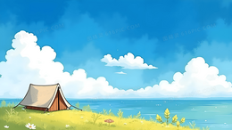 春天蓝天下海边露营背景