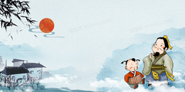 蓝色唯美中国风水墨PSD分层H5背景素材