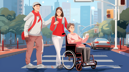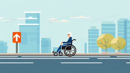 > 残疾人过马路礼让行人交通安全插画