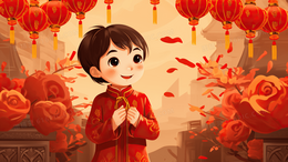 > 2024新年龙年喜庆男孩过新年卡通人物插画