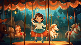 > 小朋友在游乐场玩旋转木马童年插画